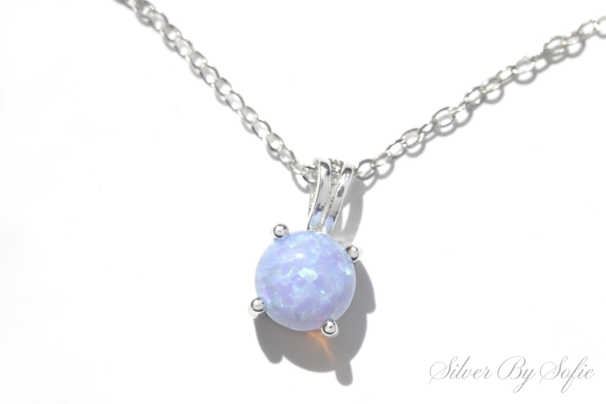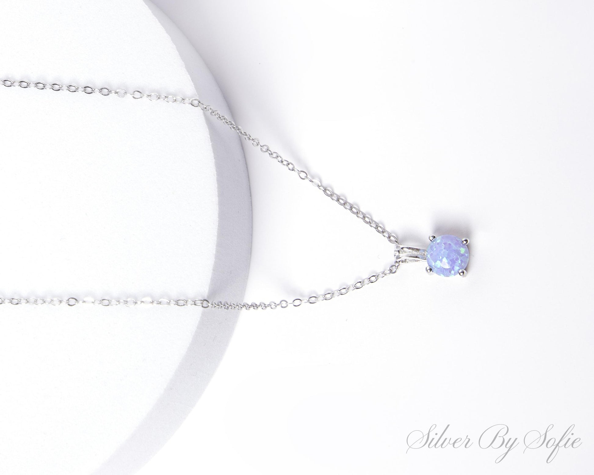 Light blue opal sterling silver 4 prong necklace